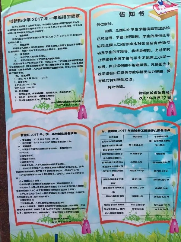具有市区常住户口的适龄儿童,报名时需持:①户口簿②房屋所有权证③父母身份证④《计划免疫保偿证》或《预防接种卡》(加强、计划免疫必须完成)⑤河南省入托、入学儿童预防接种证验查证明,带孩子按时到学校履行报名手续。